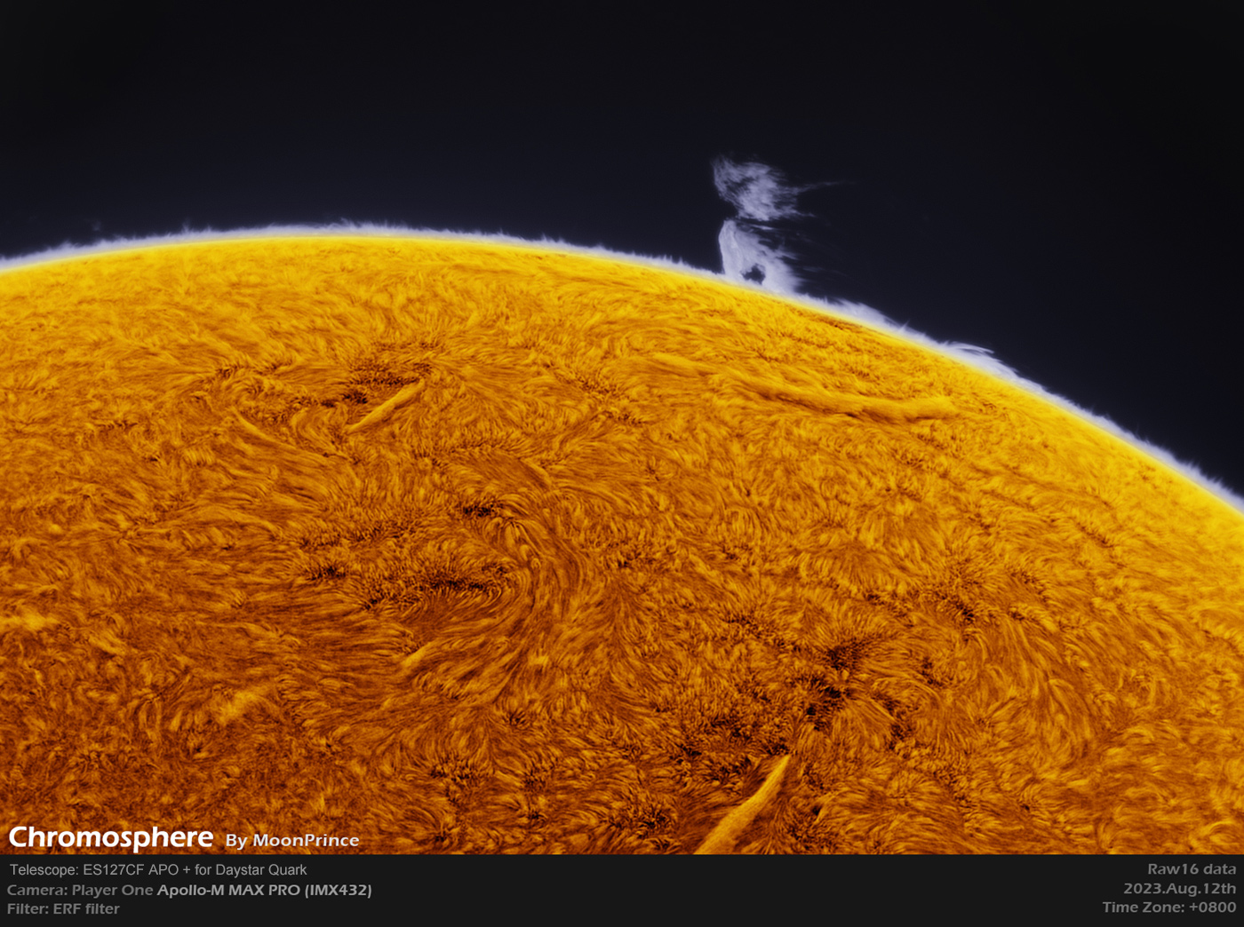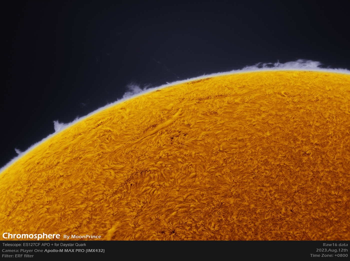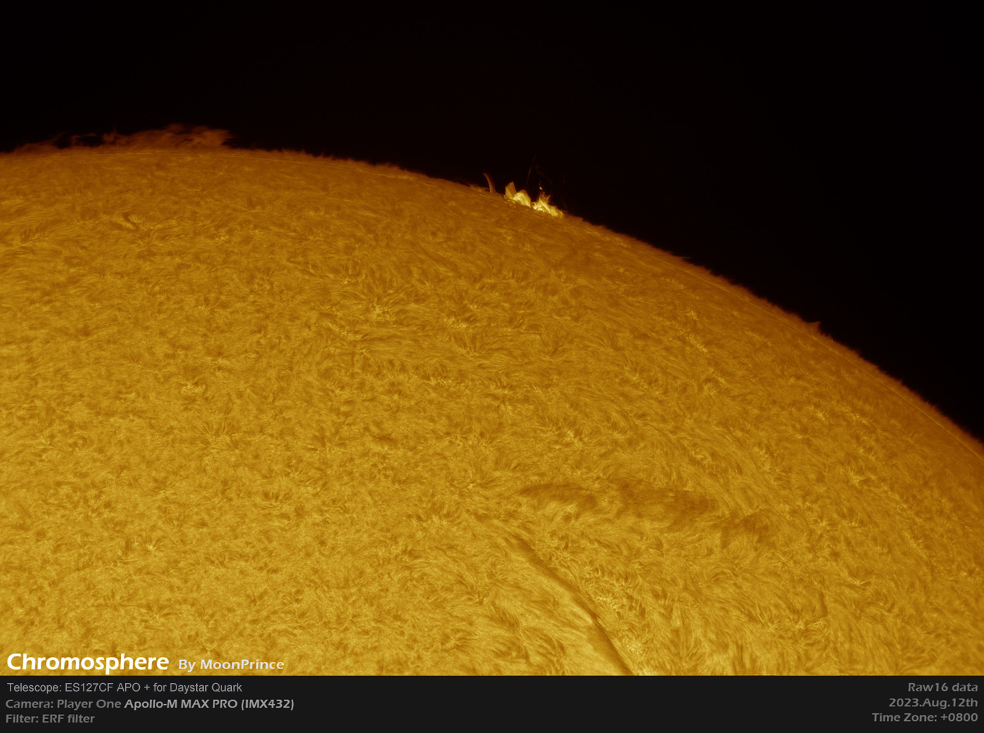 With 9um pixel size, it has 1.5 times the pixel size of the IMX174 camera. This means that it can operate at longer focal ratios, such as the solar prominence filters (4.2X) for SCT + Daystar.