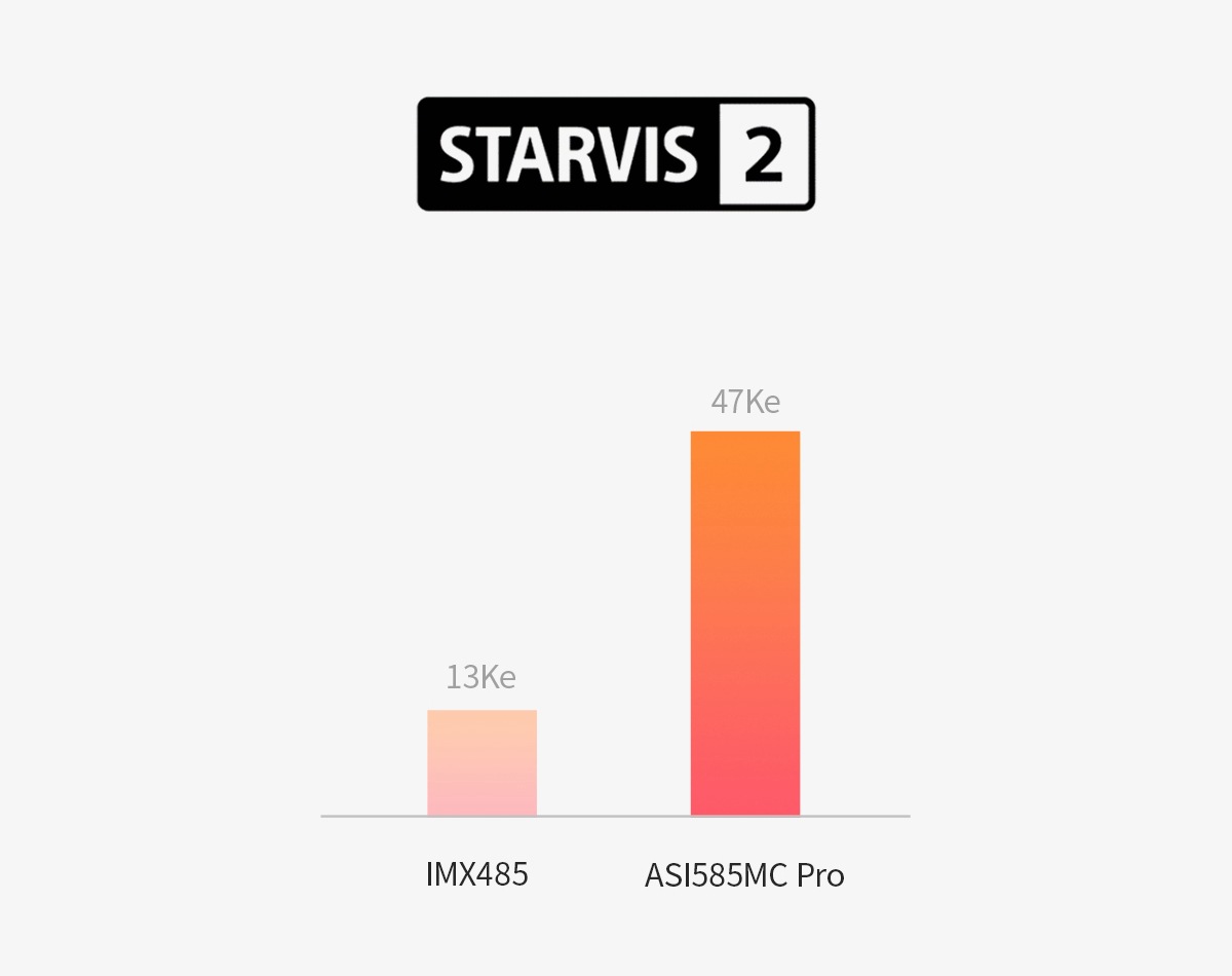 STARVIS 2 is the latest technology with a wider dynamic range and super-high sensitivity beyond the human eye. Benefiting from it, ASI585MC Pro's sensitivity and signal-to-noise ratio is greatly improved.