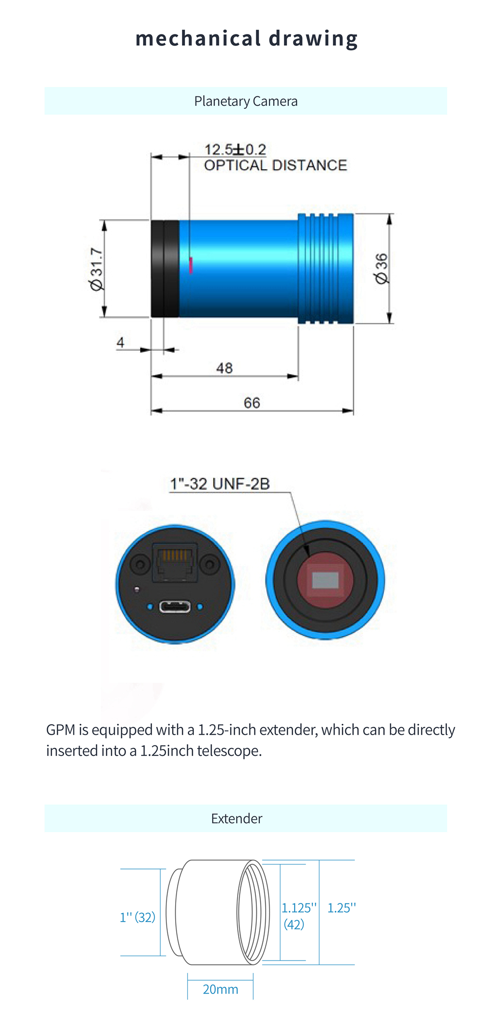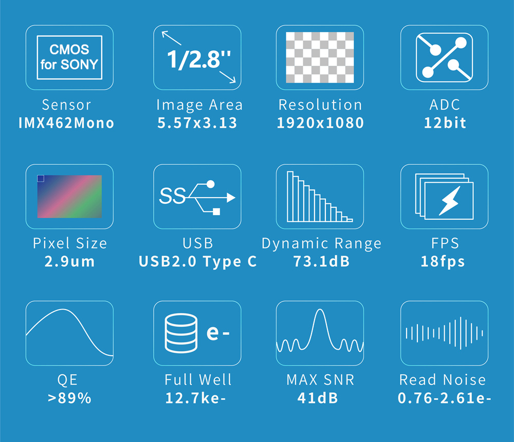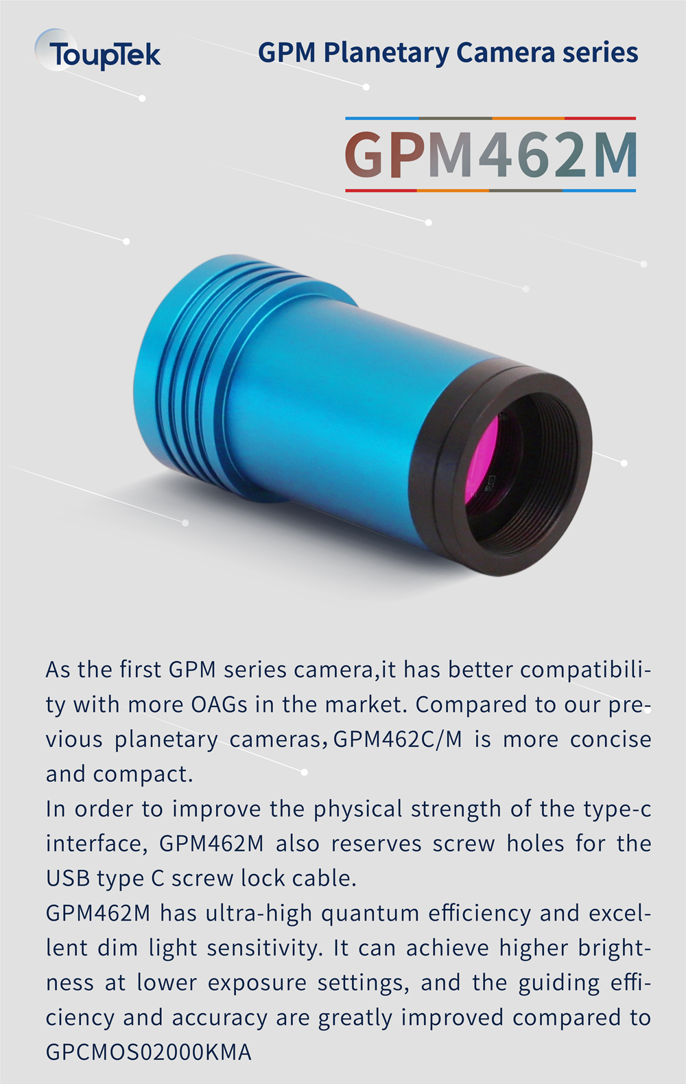 ToupTek GPM462M 2.1MP Planetary Camera Guide Camera Type-C Interface USB2.0 Infrared Enhancement