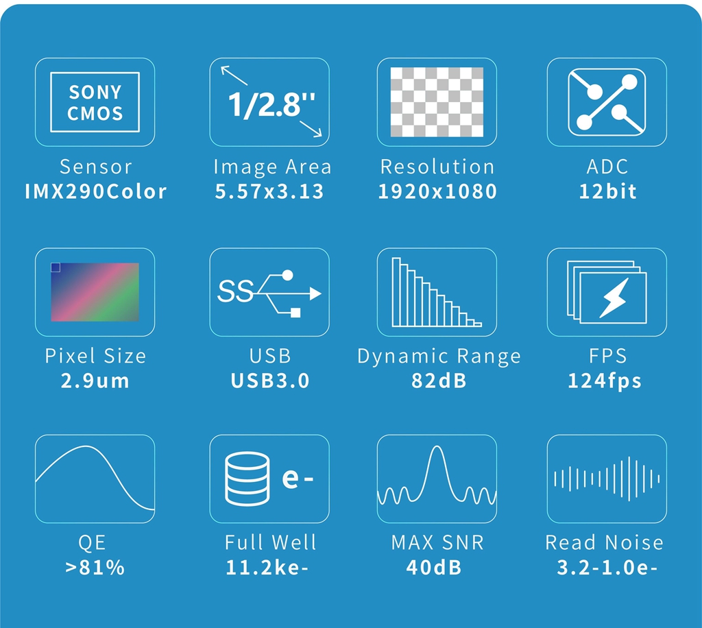 ToupTek Blue G3M290C Mini Planetary Color Camera USB3.0 IMX290C Astronomical Guide Camera 1/2.8-inch Sensor
